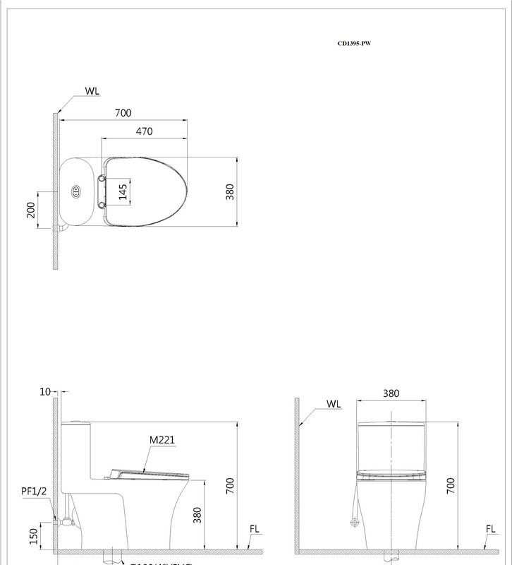 • Tâm thoát phân: 300mm