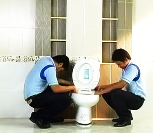 - Tránh không tráng đầy xi măng vào khoảng trống giữa lỗ cống và thân bồn cầu caesar.