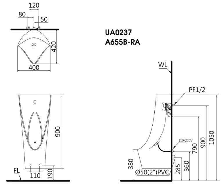 Tên sản phẩm: Bệ tiểu nam cảm ứng Caesar UA0237