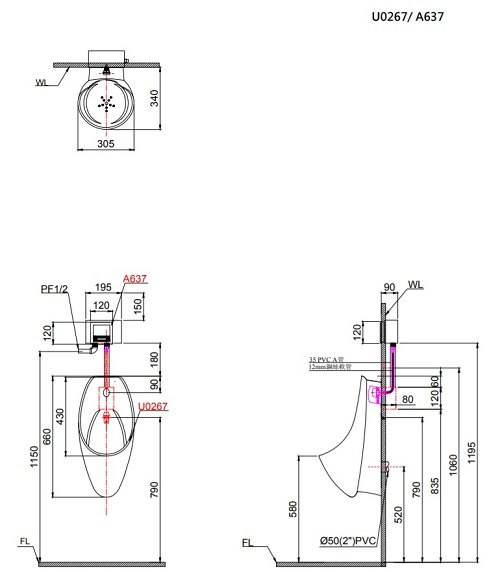 Tên sản phẩm: Bệ tiểu nam treo tường Caesar U0267