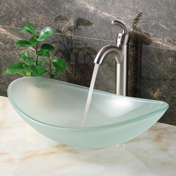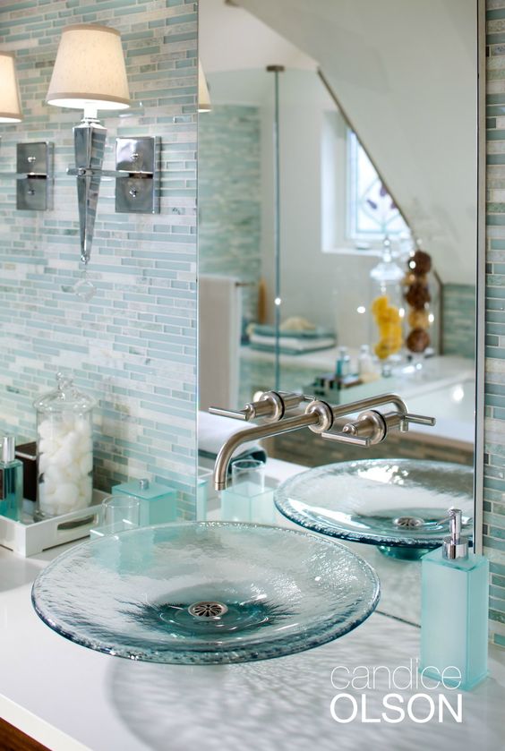 Kính là vật liệu tuyệt vời cho trang trí nhà cửa, nó phù hợp, đẹp sắc nét với bất kì phong cách, không gian hay thiết kế nào. Kính có thể sử dụng cho cửa, vách ngăn, làm mặt bàn hay các tác phẩm nghệ thuật. Kể cả trong phòng tắm cũng có thể sử dụng được chất liệu này như vách tắm kinh. Hôm nay tôi muốn giới thiệu cho bạn ý tường sử dụng kình trong phòng tắm mới lạ hơn, đó là những chiếc bồn rửa mặt bằng thủy tinh.