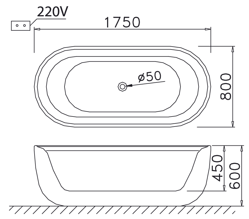 Kích thước (D x R x C) : 1750 x 800 x 600 mm