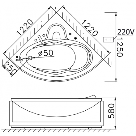 Kích thước: 1220 x 1220 x 580 (dài x rộng x cao)