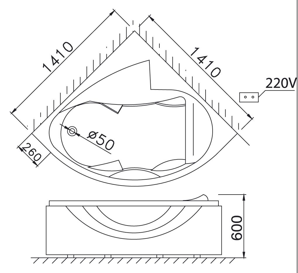 Kích thước: 1410 14510 x 600 (dài x rộng x cao)