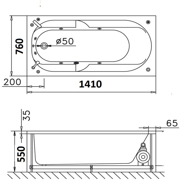 Loại bồn tắm xây (không có chân yếm, không massage)
