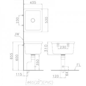 Tên sản phẩm: Chậu giặt xả xuống sàn SS558AS dùng bộ xả BF558AS
