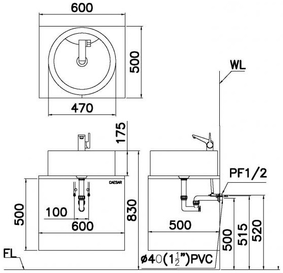 Tên sản phẩm: Chậu rửa lavabo Caesar LF5240 đặt bàn
