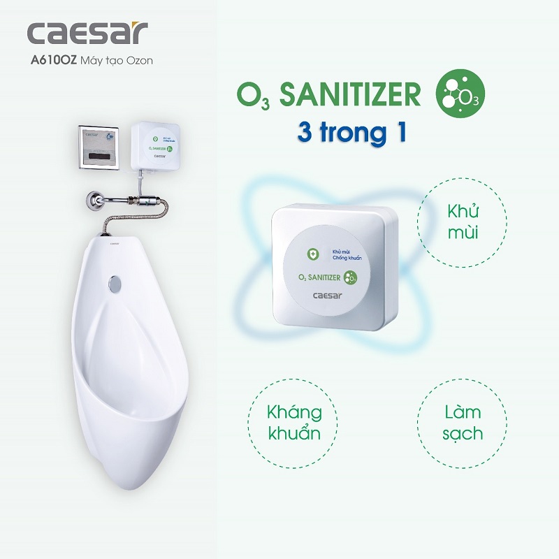 Các loại bệ tiểu hiện nay dù là lắp thiết bị cảm ứng hay sử dụng bộ xả nhấn, đều có thể lắp “Máy tạo Ozon” của Caesar (mã số A610OZ), lắp máy tạo Ozon kết hợp với ưu điểm của thiết bị xả cảm ứng tiểu, vệ sinh bề mặt lòng bệ tiểu bằng nước ozon mang lại các hiệu quả sau: