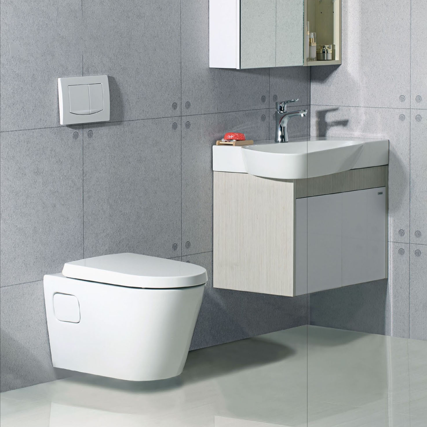 Bồn cầu treo tường được thiết kế với bể nước được giấu kín bên trong tường. Mục đích nhằm để tiết kiệm tối đa không gian, hơn nữa cũng rất dễ dàng vệ sinh khối bên ngoài.