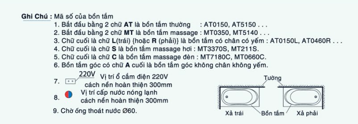 - Bắt đầu bằng 2 chữ AT - là mã bồn tắm thường: AT0150, AT5150...