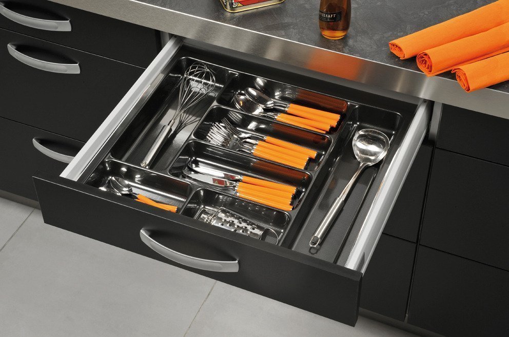 Các ngăn kéo có thể được phân chia dao kéo để biến sự hỗn loạn trở nên ngăn nắp. Khi dao và nĩa đều theo thứ tự, nhà bếp của bạn trông có tổ chức hơn . Được thiết kế chu đáo, các ngăn dưới đây rất linh hoạt và có thể được dịch chuyển xung quanh để tạo ra các ngăn có kích thước khác nhau. Không cần phải tìm kiếm tốn thời gian của bạn.