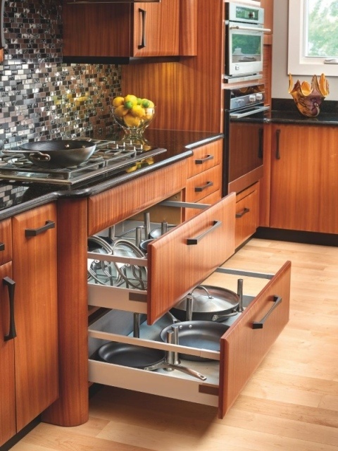 Các phụ kiện và dụng cụ sắp xếp tủ đựng có thể kéo ra giúp cuộc sống trở nên đơn giản, vì mọi thứ đều dễ tiếp cận và thậm chí còn dễ tìm hơn! Cửa chớp trượt lớn ẩn đựng thực phẩm và ngăn kéo kéo ra ngoài giúp bạn với đến góc xa nhất. Lưu ý duy nhất cho loại tủ này là bạn nên để đồ trong trọng lượng cho phép sẽ giúp chúng hoạt đông trơ tru hơn mà không bị kẹt.