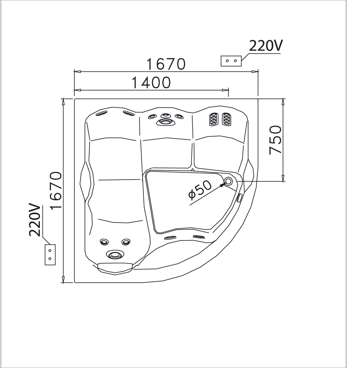 - Kích thước: 1670 x 1670 x 780 mm (D x R x C)