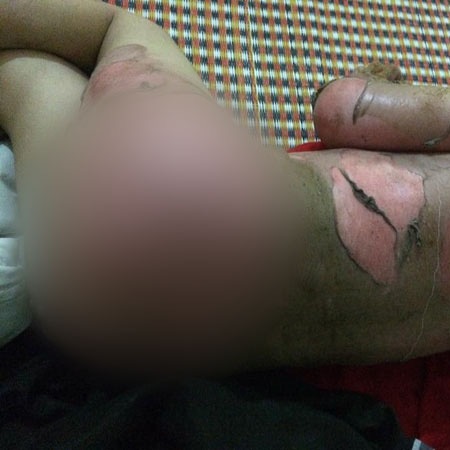Chuyến đi Indonesia của gia đình ông bố này phải sớm kết thúc và sau khi đưa con đến cấp cứu trong một bệnh viện địa phương, sau đó vội vã quay trở về Thái Lan. Tại Thái Lan, sau khi điều trị và chăm sóc các bác sĩ xác định em bé đã bị bỏng độ 2, tức là vào khoảng 25-30%, trên da có một vài vết bỏng sâu nhưng may mắn không đáng kể.