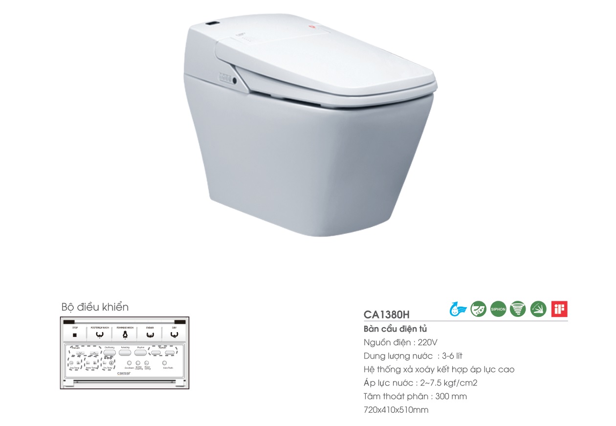 Bàn cầu điện tử Caesar sử dụng chế độ tự động xả, phân biệt chế độ xả nhiều hay ít, hệ thống rửa tự động với đa chức năng như chức năng làm nóng, sấy khô, masage, tiết kiệm điện....