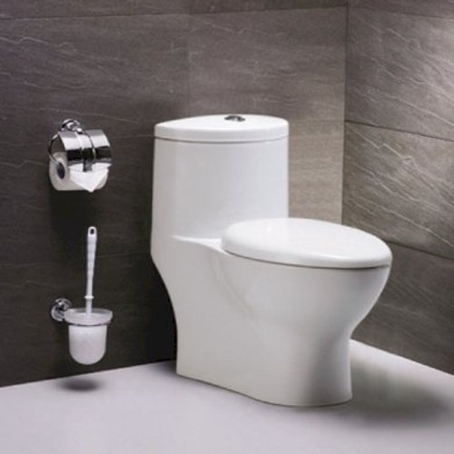 Ngoài ra, bồn cầu được sử dụng kỹ thuật hút xả êm, hạn chế tiếng ồn. Tông màu trắng được phủ lớp men cao cấp dễ dàng vệ sinh.