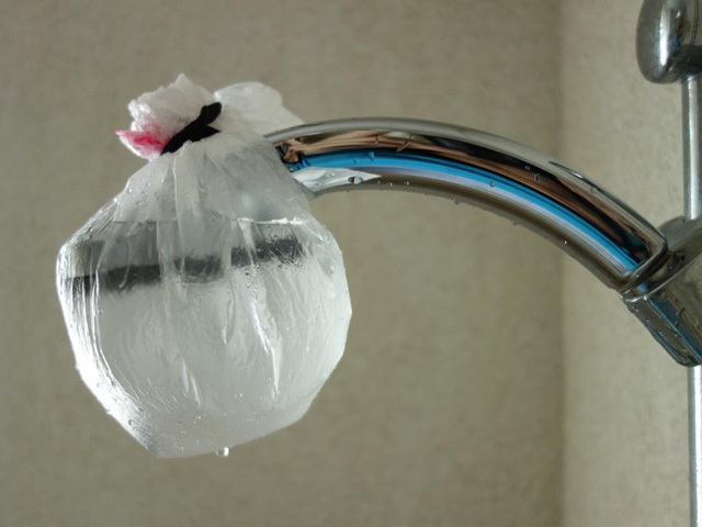 + Để yên khoảng 5 – 10 phút rồi tháo bỏ túi ni-lông, rửa sạch với nước. Cuối cùng, bạn xả nước để kiểm tra xem các tia nước đã thông suốt hoàn toàn hay chưa.