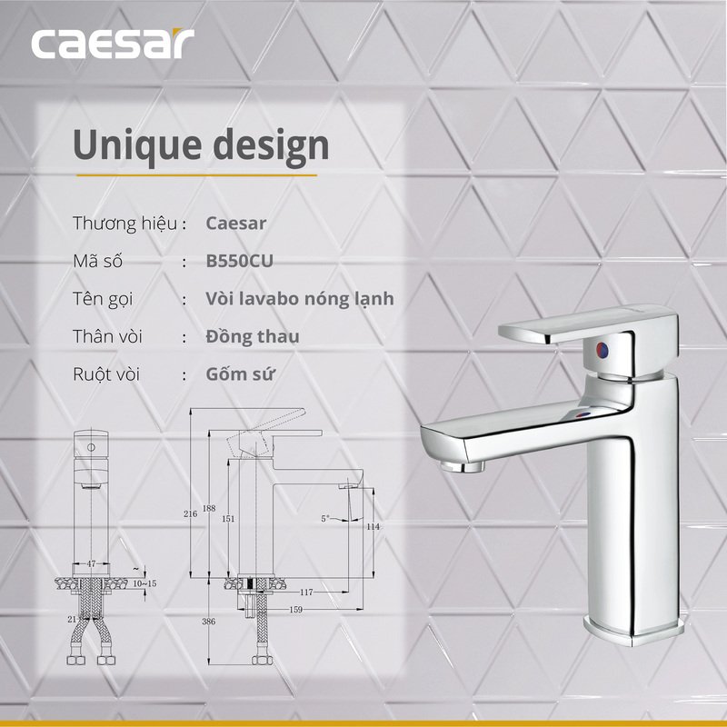 Vòi chậu nóng lạnh Caesar B550CU